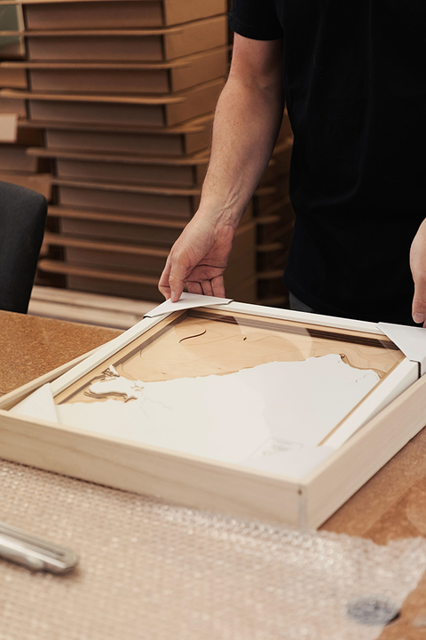 Hand assembled, Enviromentally sourced Materials, The highest grade 1.5mm birch ply, Topped with White arcylic. Comes framed ready to hangFRAME YOURS